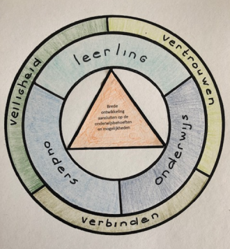 Dat vinden wij belangrijk. Het voorkomen van onderpresteren, verzuim en schooluitval. Cruciaal voor een zo optimaal mogelijke ontwikkeling hierin is de driehoek van leerling, ouders en onderwijs.